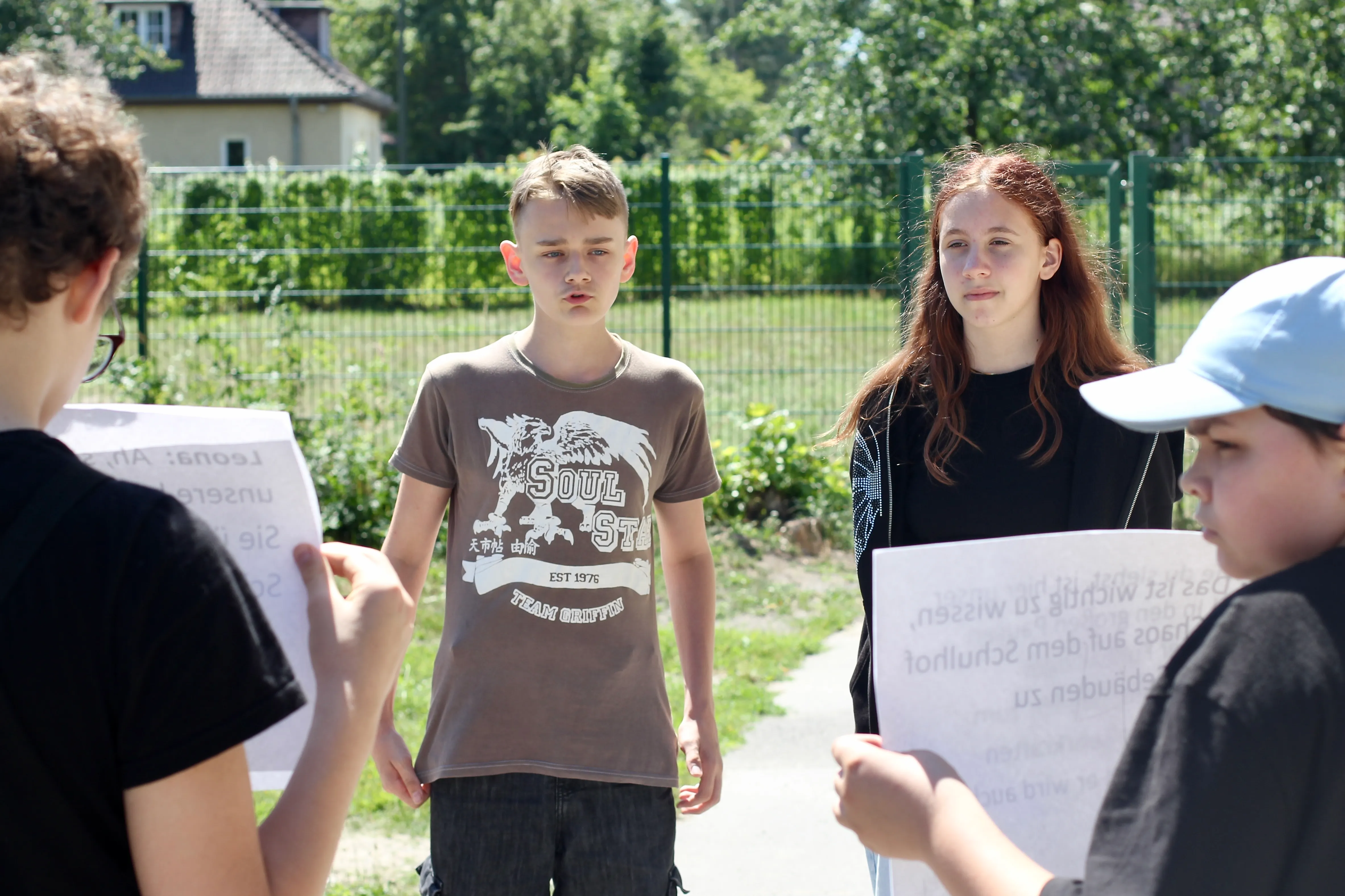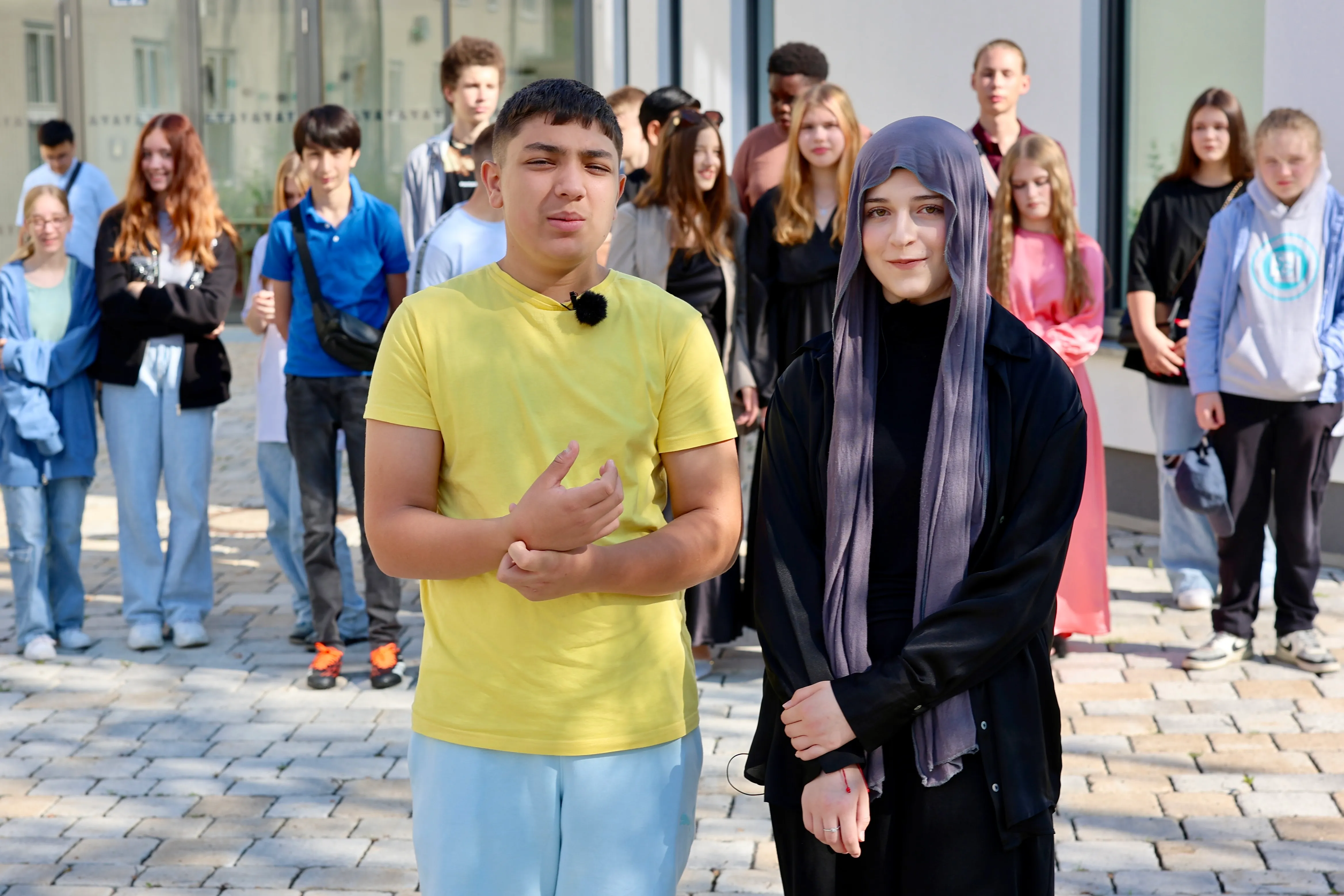 Die Schüler der Klasse 8.1 heißen die neuen Siebtklässler willkommen und zeigen in ihrem Video aus der Projektwoche 2024, wie man sich nicht nur auf unserem ausgedehnten Campus, sondern auch im Vertretungsplan von Anfang an zurechtfindet. Während der sieben aufreibenden, aber zugleich auch äußerst produktiven und erfüllenden Aufnahmetage wurden über 200 GB an Videomaterial produziert, die zu dem unten verlinkten Video zusammen-geschnitten wurden. Alle teilnehmenden Schüler gaben sich die größte Mühe beim Einstudieren ihrer Texte und Einüben ihrer Auftritte und brachten trotz unzähliger Takes, trotz Hitze und Regens die Dreharbeiten tapfer und pünktlich zu Ende. Am Ende des Videos wartet eine interaktive Überraschung auf die aufmerksamsten Zuschauer. Projektleitung: Hr. Pulatov, Hr. Heinz, Hr. Keller.